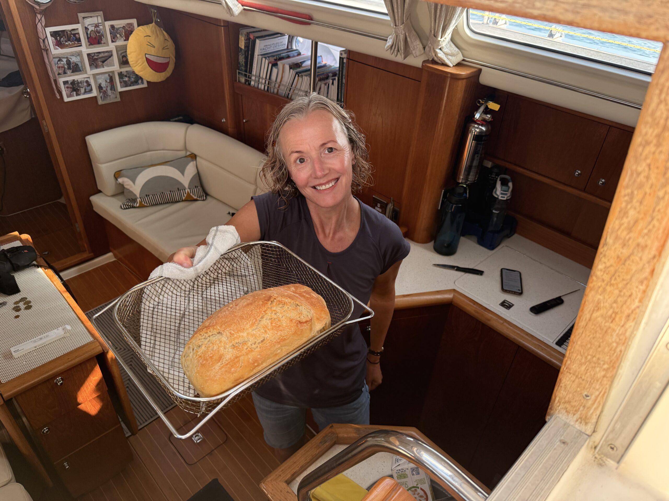 We also spent a couple of nights chatting to our neighbours, another British couple Liz & Richard on a Moody Eclipse which is an interesting version with a pilothouse helm.  Chris helped with sails and we had some great chats – they are a very experienced couple! They even kindly gifted us a couple of diesel canisters and a tub of sand to use as Orca deterrent.
