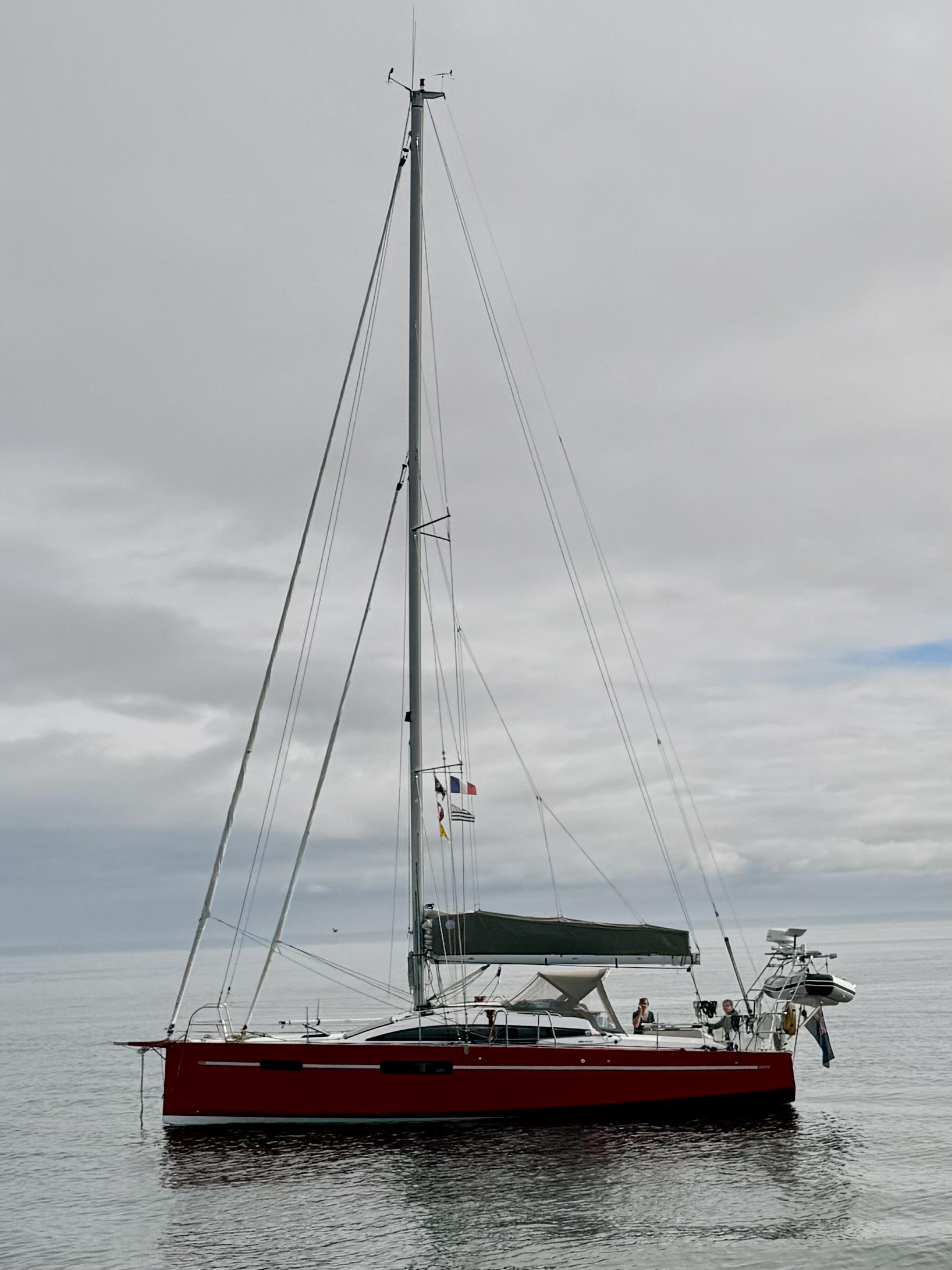 One time a French training boat, skippered and crewed by a group of young adults, ended up quite close between us and a big rock. They were kind enough to ask us if we were ok with them there and we said we were fine … but not sure the rock would be so agreeable!  They decided to move!