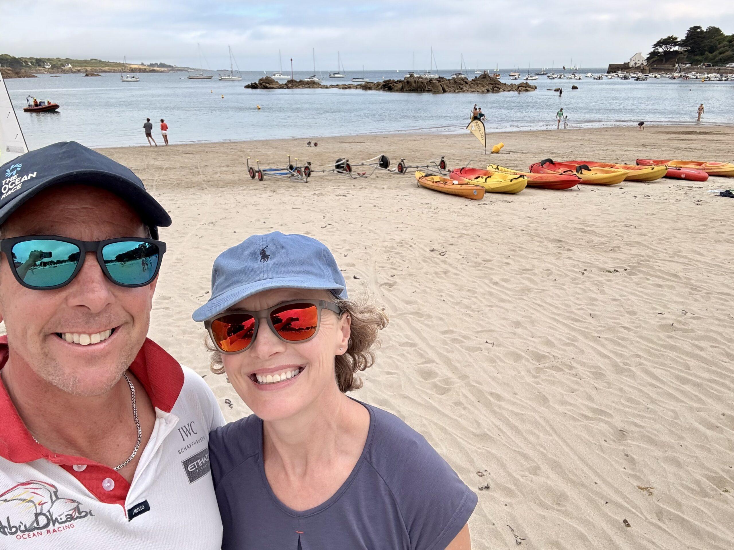 Plage de Kersiden – a large and peaceful beach, where paddleboarders came out to say hello on our arrival. He had been a local sailing instructor and she was a chatty Canadian who had lived in France for years. A snorkeller also told us about a tired sea bass with a lure attached to it that looked like it needed catching. Chris tried but didn’t manage it. We also enjoyed great walks round to a local market for fresh bread!